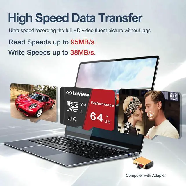 High-speed: LaView Micro SD card up to 95MB/s & 38MB/s read & write speeds respectively. (performance may vary based on host device, interface, usage conditions, and other factors)