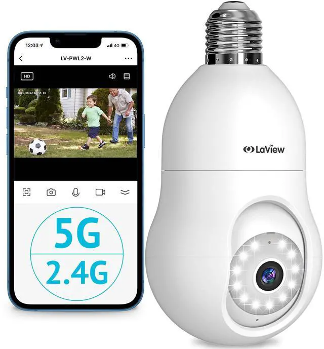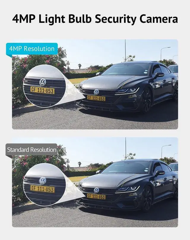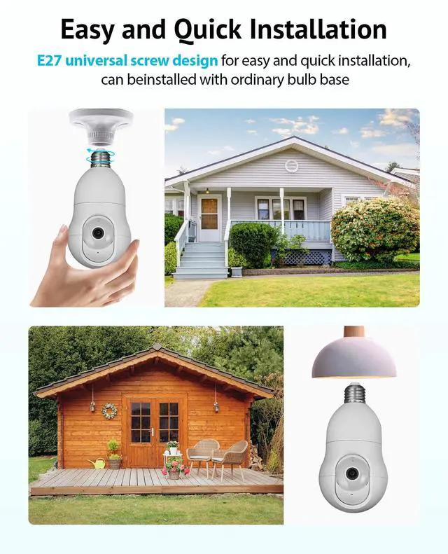 4MP HD Image & Starlight Color Night Vision - See ultra-clear details during the day and night with 4MP 2560x1440P resolution and starlight color night vision ^^ 360 Degree Motion Tracking & Detection - Accurately detect and automatically track motion in a 355 range up to 17 feet away with adjustable sensitivity ^^ Two-Way Audio & Alarm Siren - Enable two-way communication and sound alarm siren to deter intruders ^^ Multi-User Sharing & Alexa Compatible - Share live feed with family and friends and control camera using Alexa voice commands ^^ Wireless & Easy Installation - 5GHz & 2.4GH z dual-band WiFi allows flexible connectivity and installation using a standard E27 bulb base