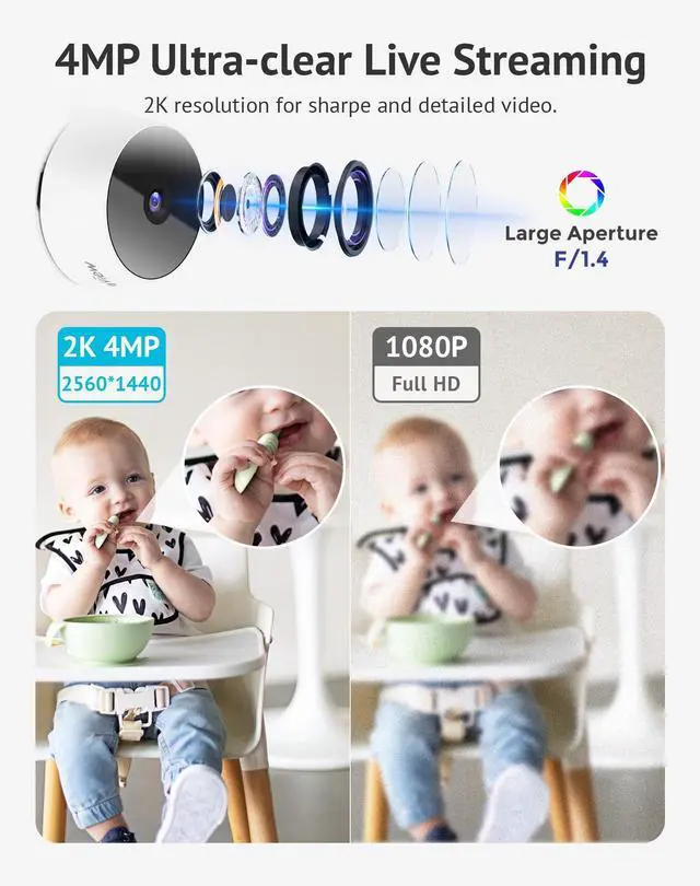 Resolution & Night Vision: Experience 2K HD (2304X1296P) clarity with 12x digital zoom; superior to 1080P; indoor cameras offer starlight color night vision without spotlights; no sudden lights to disturb your baby's sleep ^^ 24/7 Real-Time Motion Alert & Clear Two-way audio: Instant motion detection with smart alerts; this indoor home security camera supports clear two-way audio with noise cancellation; stay informed and communicate with family anytime ^^ Fit for most scenes
