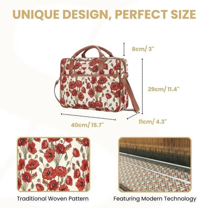 Signare Tapestry Laptop bag Computer Messenger bag Briefcase for Women with Floral Poppy Design (CPU-POP)