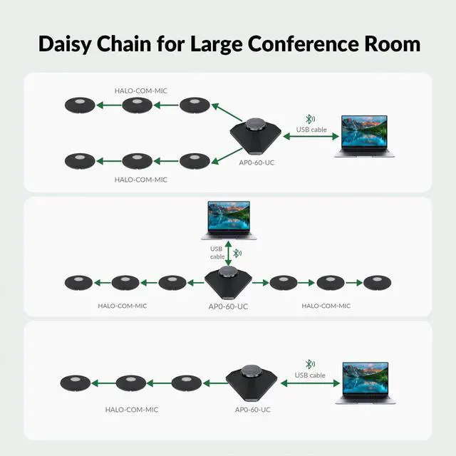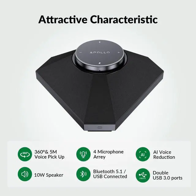 [360 Omnidirectional Pickup] Designed with a four-array omnidirectional digital microphone, this speaker with microphone ensures clear speech transmission within a 5m/16ft range. ^^ [Super Loud for Lager Meeting Space] The 10W powerful speaker delivers impressive sound quality throughout the meeting space, with excellent full duplex for seamless, synchronous conversations. ^^ [Innovative Daisy Chain Function] With 2x cascade ports, this conference speaker and microphone supports cascading up to 3 microphones on each side, perfect for large meeting spaces. ^^ [Intelligent Noise Reduction Algorithm] Featuring AEC (Acoustic Echo Cancellation), ANS (Automatic Noise Suppression), and AGC (Automatic Gain Control), this Bluetooth speaker with microphone eliminates background noise, capturing only human voices during meetings.