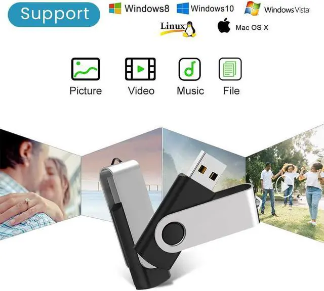 [(Plug and Play)] No need any software, the USB drive support Windows 11/10/8/7/Vista/XP/2000/98/ME/NT Linux, Mac OS and Chrome, compatible with USB 2.0 and below.