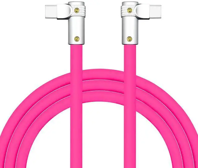 chubbycable FlexElbow Pro - 90 Degree Design 240W Fast Charge Cable Ultra-Thick Silicone Right Angle USB C Cable Phone Tablets Charging Cord, Rose Red, Double Elbow Type C to Type C, 4.9FT