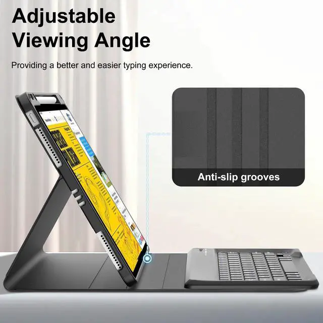 La funda de alta calidad para iPad Air de 13 pulgadas 2024 esta hecha de cuero compuesto exterior vegano de primera calidad y forro antideslizante suave, una cubierta protectora para teclado le brinda a su iPad proteccion frontal y trasera de 360 deg contra rasgunos accidentales. Y la funda para iPad Air de 13 pulgadas de Apple tiene multiples angulos de vision, puede elegir su angulo optimo para usar su iPad. Escriba, dibuje, vea