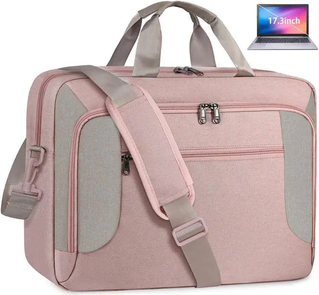 Laptop Bag 17.3 Inch Laptop Briefcase Large Waterproof Laptop Case for Men Women Business Office Work Computer Bag 17 Inch Adjustable Shoulder Messenger Bag, Pink