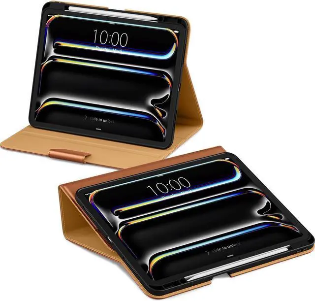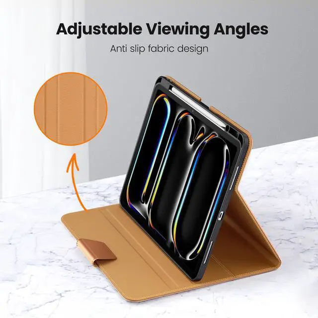 DTTO for iPad Pro 13 Inch M4 Case with Pencil Holder, Premium Leather Business Folio Stand Smart Cover, Auto Wake/Sleep, Magnetic Clasp, Multiple Angles, Brown