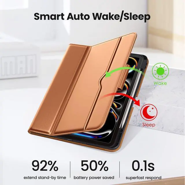Multi Function - Magnetic smart cover supports fast response auto sleep/wake function. Features front document card pocket to keep notes, cash, cards