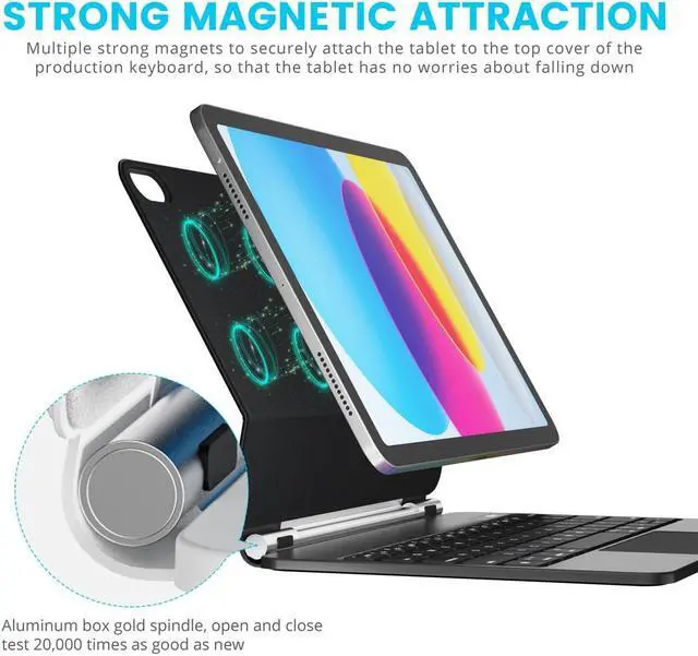 [(7 Colors Backlight & 3 Modes Adjust Backlit)] The keyboard for ipad 10th generation with multi-touch trackpad and 7-color backlit provide a comfortable and efficient typing experience.With 3 adjustable brightness levels, making typing smooth and efficient, protect your eyesight.