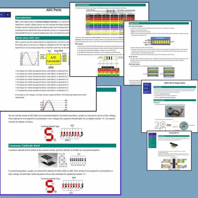 The lessons are carefully prepared. The lessons not just provide you the code and hardware connection, but also explains the detailed principle. As the Stepper Motor for example, we explain the electronic basic principle about how it works internally. So you will understand why the motor rotate when we send the relative signal to it.