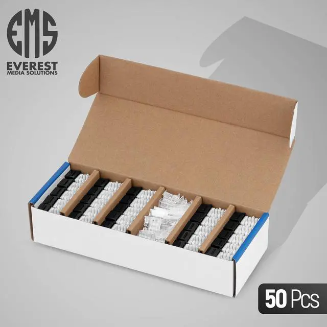 Product 3 - Everest Media Solutions 90deg Angled CAT6/5e Keystone Jack in Black - Slim Profile RJ45 Female Connector - Compatible with 90deg Angled Speed Termination Tool - easyJACK (B094WB91H3) - 50-Pack