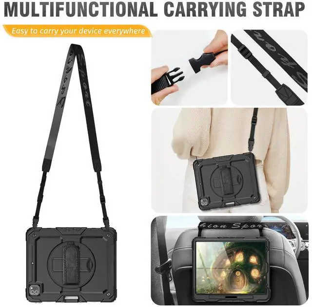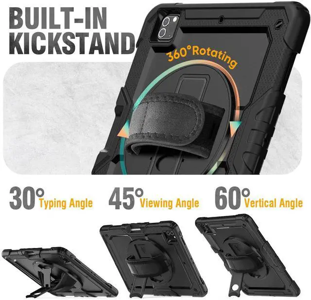 360deg Rotating Hand Strap & Stand -- This protective 12.9 inch case 2022 2020 provides a stable supports, with viewing/drawing/typing angles. You can hold it safely by one han