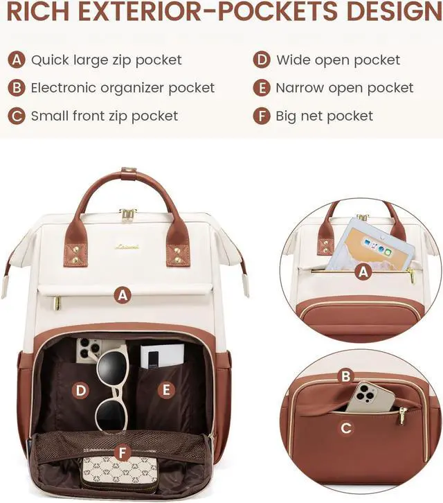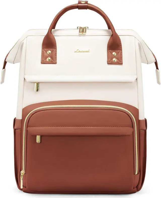 [(High Quality & Large Capacity)] : LOVEVOOK leather laptop backpack for women is made of high quality waterproof PU leather, the no-slip gold zippers are a nice touch, the stitches are tight and very durable. CLASSY, FUNCTIONAL, ROOMY. Dimensions: 12"L 16.5"H 7.8"D, Weight: 2.75 lbs. Total of 2 compartments and 19 pockets for your computer,binders,notebooks,water bottles,work necessities,college supplies and travel essentials.