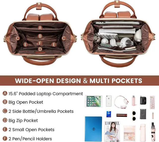 [(Wide Open Teacher Bag & College Backpack)] : The brown interior lining makes it seem so luxurious. Reinforced edges and steel frame of the main compartment keep the perfect shape of the bag and durable of usage. Wide Open Design, rectangular opening makes i