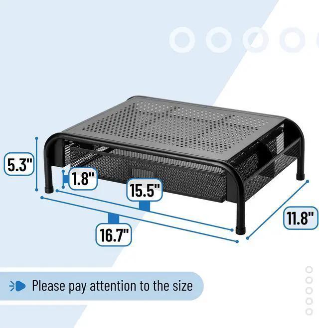 This package includes 2 floral mouse pads ( 12.4" x 10.6" x 0.08" ) and 1 mesh monitor stand with a sliding drawer, perfect for organizing your desk and improving your workspace. The monitor stand is made of high-quality metal with a rust-resistant coating, providing an optimal viewing height for a comfortable working experience. The non-slip feet ensure the stand stays in place, while the mesh design keeps your workspace tidy. The mouse pads feature a high-quality cloth surface for smooth mouse gliding and precision, with an anti-slip natural rubber base.