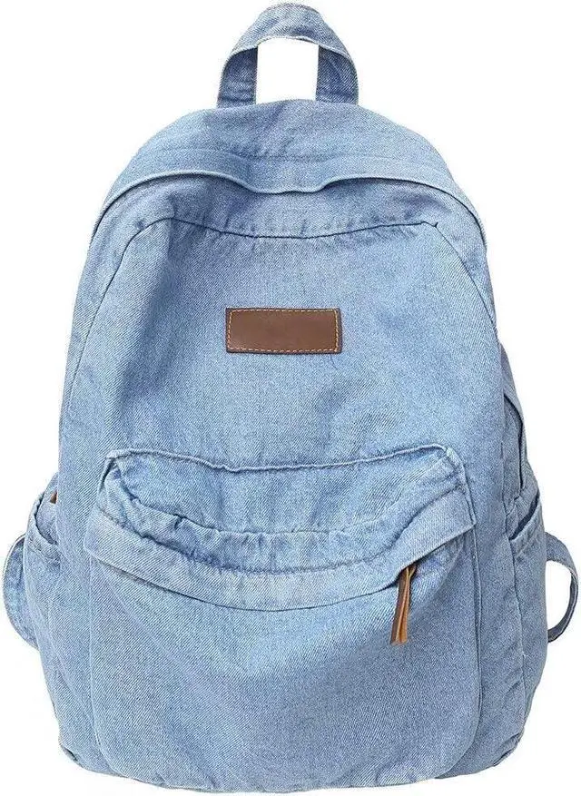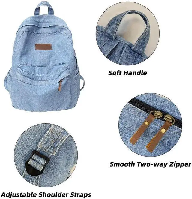 1. The fabric of this jeans backpack is soft and comfortable, and the PU leather zipper head is not only chic, but also easy to use. The two-way zipper at the top, the front zipper pocket, the side pockets and the large opening are convenient for accessing items.