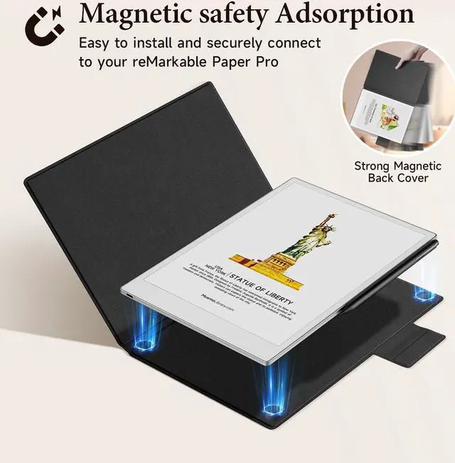 [Book Folio Design/Auto Wake-up]: Built-in Magnet that allow you to attach/detach your remarkable pro easily, won't damage remarkable paper pro tablet while provide sufficient protection. It allow charging with case on. Open/close the front cover to automatically wake up/lock the device, preserving battery while also keeping notes private.