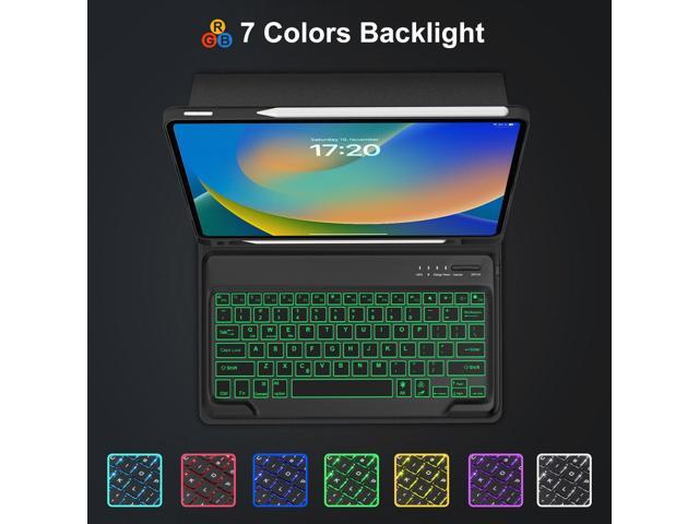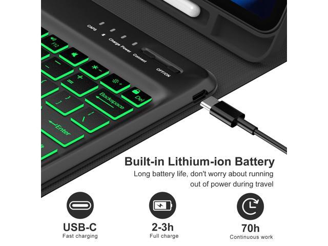 - TYPE DAY AND NIGHT (WITH BACKLIGHT) - Bluetooth keyboard case for 12.9 inch iPad Pro comes with 7 pure colors backlight. The 3 brightness levels let you work comfortably at night or dark. The 500mAh battery and ultra-efficient design let you work longer on a single charge. Work daily for 2 months or nightly for 1 weeks on a single charge then recharge quickly with convenient USB-C charging.