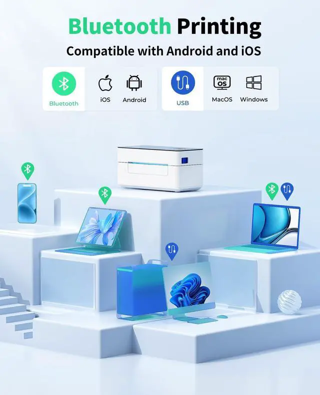 Universal Platform Compatibility: Print effortlessly across major platforms including USPS, UPS, eBay, Etsy, Shopify, , PayPal, and Poshmark. Our wireless thermal printer is the ideal tool for online sellers and package shippers