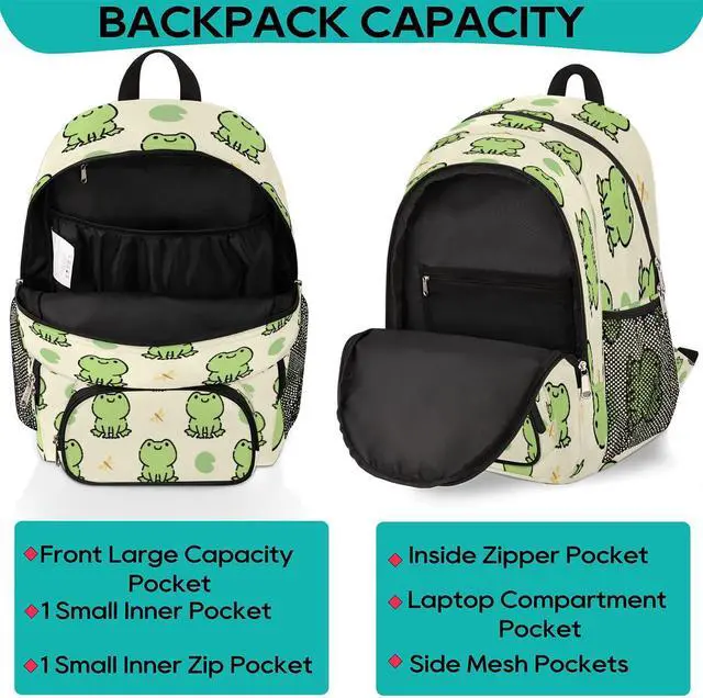 TropicalLife Cute Frog 18 Inch Bookbag School Backpack Teens Girls Boys Schoolbag Shoulder Computer Hiking Gym Travel Casual Travel Daypack