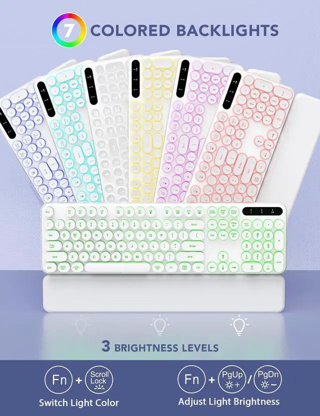 COOL 7-COLOR BACKLIGHT - The wireless keyboard has 7 switchable backlights and an RGB mouse that automatically changes color. Light-up letters help you work better at night and use light effects to improve the atmosphere at workspace.