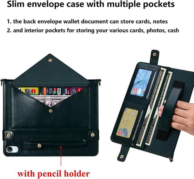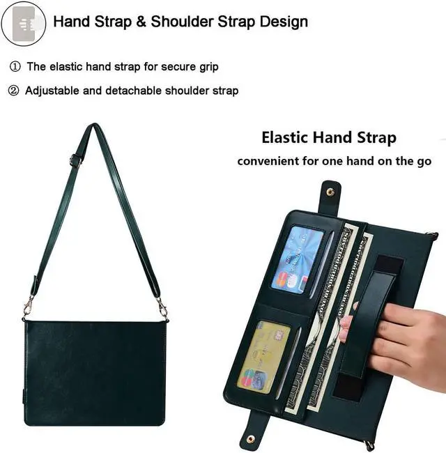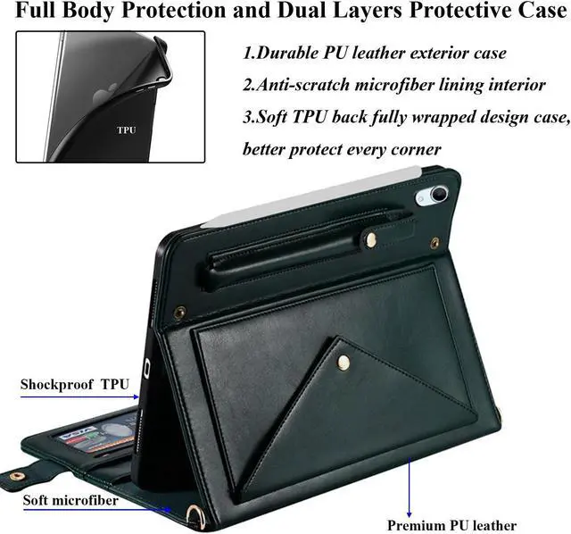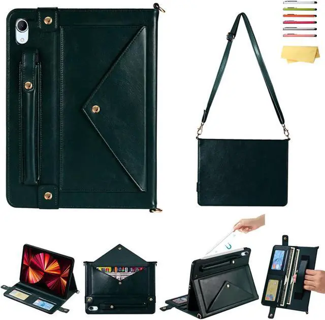 UUcovers Crossbody Handbag Case for iPad 10th Generation 10.9 inch 2022,with Pencil Holder [Shoulder Strap/Hand Strap] Card Pockets/Folio Stand Envelope PU Leather Magnetic Wallet Cover, Dark Green