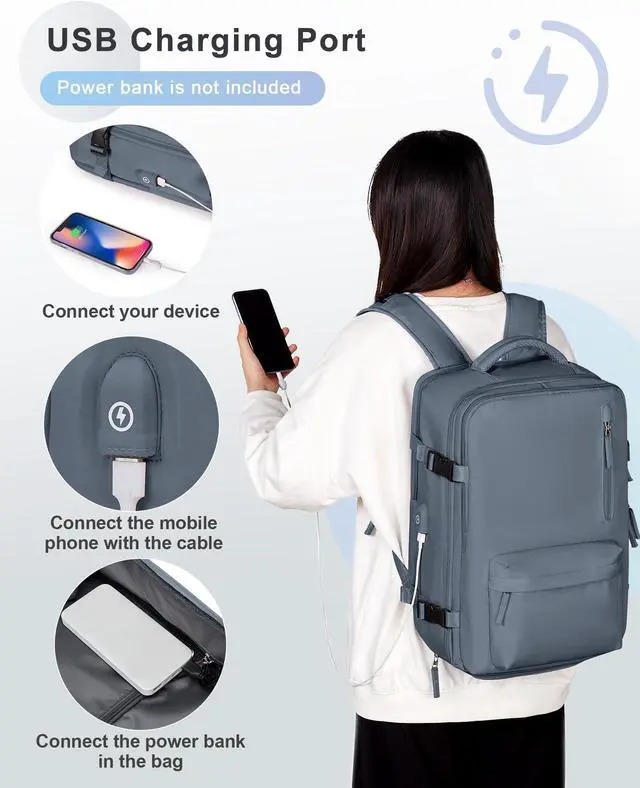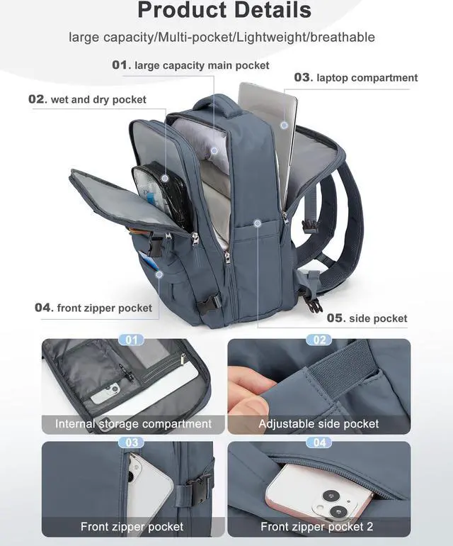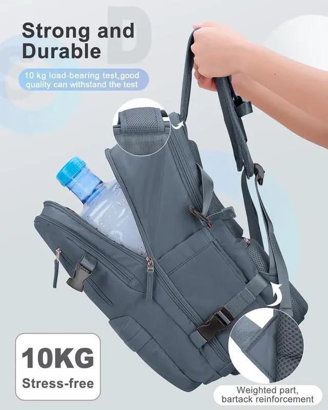 Large Capacity Travel Backpack: Two main pockets for women's personal items,clothes and more; keep your items organized and easier to find. Two laptop compartments for a 13-inch ipad and a 15.6-inch laptop.the casual backpack is also designed with a waterproof wet bag and a separate shoe compartment, the wet bag is made of high-density waterproof material to help you separate wet and dry items, and the separate shoe compartment can help you better carry your shoes