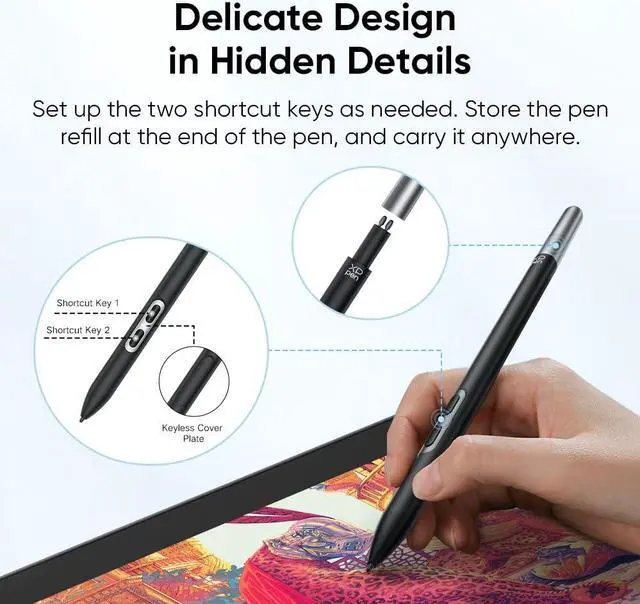 Customized Control: The X3 Pro Slim Stylus features a removable and interchangeable button design! This allows users to customize the stylus controls based on their individual preferences and creative needs The modular buttons can be swapped out, enabling users to tailor the shortcut keys to their specific workflow. This level of customization empowers creators to optimize the stylus controls for their unique digital art and design requirements