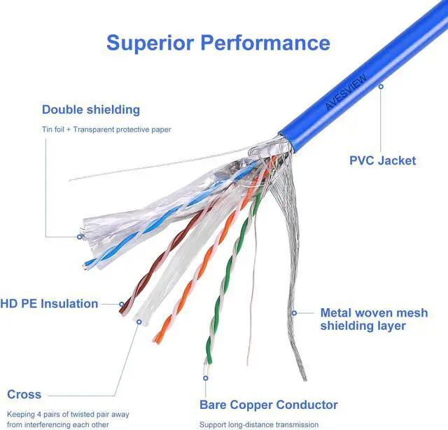 Maximize your network's potential with our premium-grade 1000-foot CAT6 Cable. Engineered with meticulous precision, this cable boasts a Shielded Solid Bare Copper conductor at 23 AWG, ensuring unrivaled data transmission efficiency. The shielding adds an extra layer of protection against electromagnetic interference, guaranteeing stable and reliable connectivity even in challenging environments. Designed to withstand the rigors of daily use, the blue-insulated PVC jacket not only enhances durability but also provides a professional aesthetic to your network infrastructure. Its robust construction ensures long-lasting performance, making it an ideal choice for both residential and commercial applications.