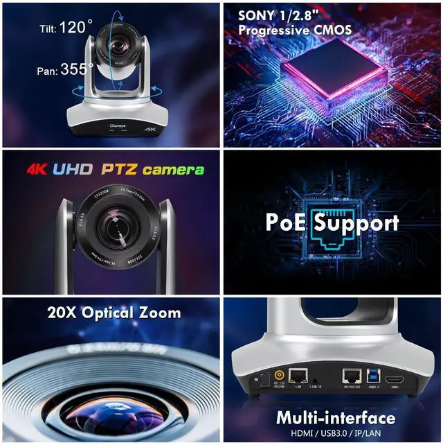 Chameye 4K HDMI PTZ Camera 20x Optical Zoom with HDMI/USB 3.0 /IP/PoE for Video Conferencing, Live Worship, YouTube OBS vMix OBS Live Streaming Camera - C420