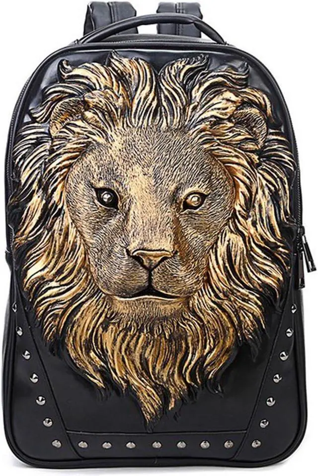 seamand Personalized 3D Lion PU Leather Casual Laptop Backpack for Men Durable Travel Daypack (Gold color)