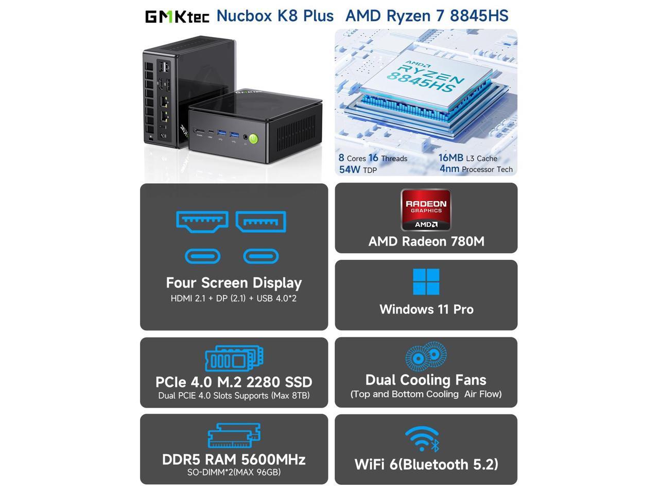 GMKtec Gaming Mini PC K8 Plus AMD Ryzen 7 8845HS(8C/16T, up to 5.1GHz) 64GB DDR5 RAM 1TB SSD, Desktop Computer Dual NIC 2.5G, HDMI 2.1, USB4