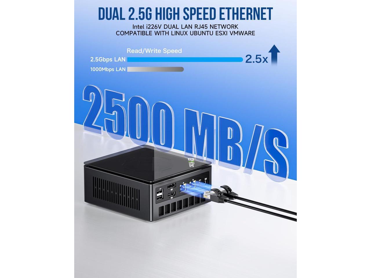 [(Dual Intel i226V NIC 2.5Gbps, WiFi 6 & BT 5.2)] Featuring dual Intel i226V 2.5Gbps Ethernet ports, K8 Plus mini PC provides faster and more stable wired network connections, ideal for gamers and content creators. WiFi 6 supports multiple frequency bands, ensuring a strong, low-latency wireless connection.