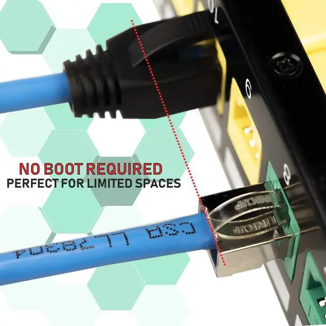 Fast and EasyLINKUP Cat6 24K Gold Plated 2-Pieces STP Connectors combine ease of use with Cat6 Gigabit Ethernet performance. Special insert design w/ pin 3 & pin 6 separated to prevent interference and makes installation easier for both professional and personal users.