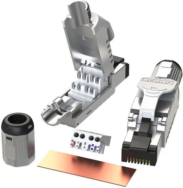 True Cat6A PerformanceLINKUP Cat6A 24K Gold Plated RJ45 Full Spec Connector supports 10G speeds at 500Mhz; perfect for ultra-high-speed applications such as HDBase-T graphics. Backwards compatible from 10GBase-T, 10 gigabit Ethernet. ^^ Easy to UseOpen hinged impact tool-free design for easy assembly. ^^ Quality BuildRobust zinc alloy housing integrates silencing cylinder to suppress EMI, NEXT, AXT interference. Screw-on metal strain relief boot increases shielding & integrity. ^^ Highly CompatibleSupports 23 to 26 AWG shielded wire with outside diameters between 6.0 mm and 7.5 mm. PoE PLUS COMPLIANT for IEEE 802.3 at Power over Ethernet (PoE+) applications.
