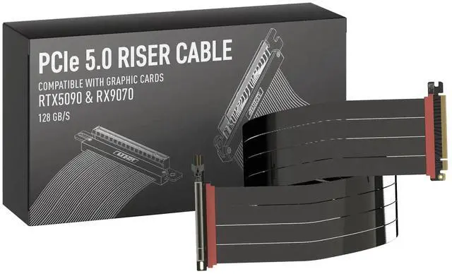 Verified Compatibility Built for vertical GPU mount and standard layouts across towers, SFF/ITX sandwich cases, open benches, and water-cooled rigs. Fully backward-compatible with PCIe 4.0 and validated on ASUS WS WRX80SE WiFi II and WRX90E Gen5 boards. Ready for next-gen cards like RTX 5090 and RX 9070. Use this PCIe 5.0 riser cable to place the GPU exactly where airflow and aesthetics demandwithout giving up stability. ^^ Gen5 x16 Performance & Shielding Delivers full 128GB/s on PCIe 5.0 x16 with tuned impedance, premium conductors, and multilayer shielding to suppress crosstalk and EMI.