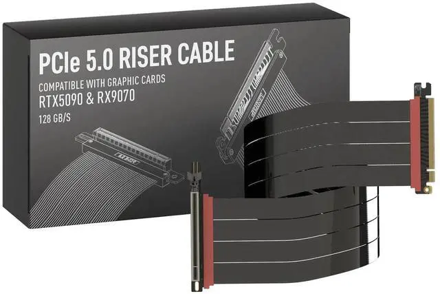 Verified Compatibility Built for vertical GPU mount and standard layouts across towers, SFF/ITX sandwich cases, open benches, and water-cooled rigs. Fully backward-compatible with PCIe 4.0 and validated on ASUS WS WRX80SE WiFi II and WRX90E Gen5 boards. Ready for next-gen cards like RTX 5090 and RX 9070. Use this PCIe 5.0 riser cable to place the GPU exactly where airflow and aesthetics demandwithout giving up stability. ^^ Gen5 x16 Performance & Shielding Delivers full 128GB/s on PCIe 5.0 x16 with tuned impedance, premium conductors, and multilayer shielding to suppress crosstalk and EMI.