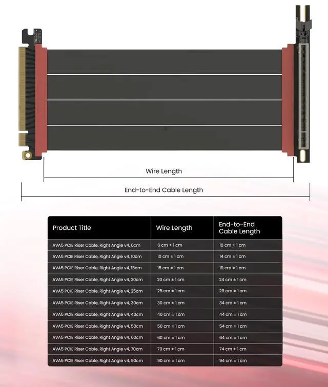 ^^ Choose the right Cable Choose a length between 235.4 inches (see Installation Instruction) and the connector you need: right angle, straight, left angle, double reverse, single reverse right, single reverse left, or single reverse straight. One family covers ITX sandwiches, server trays, and vertical displays. Consistent Gen5 signal integrity across sizes makes it a flexible PCIe extender or GPU riser cable for clean cable management today with room to evolve tomorrow. ^^ Customer Support & Direct-Exchange Warranty We offer online and email customer supportevery inquiry answered within 24 hours. Enjoy a hassle-free direct exchange warranty and prompt resolution of concerns; Business customers can access Business Pricing. If anything isnt right, reach out and well resolve it fastservice that matches top-tier PCIe 5.0 performance.