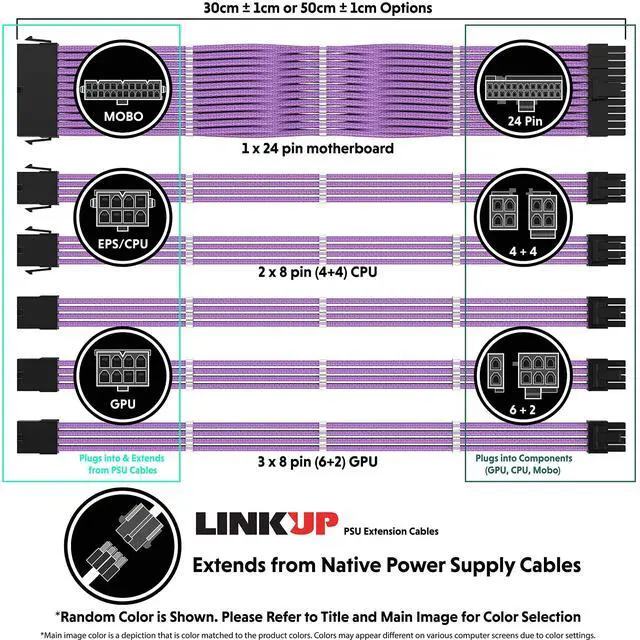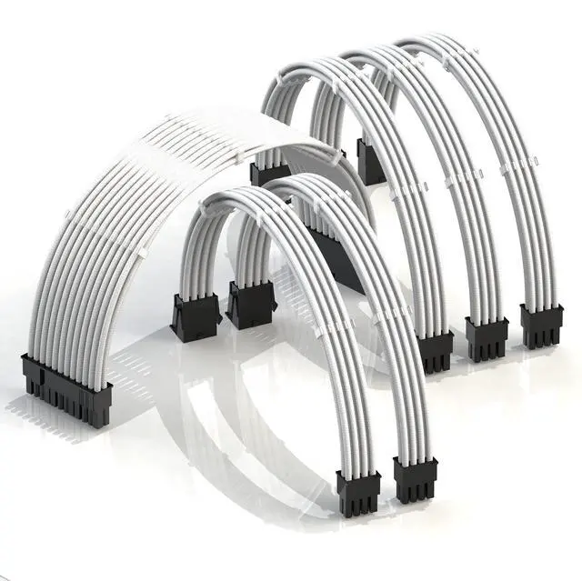 Get WiredHigh-quality, rugged, and routable modular 18AWG multi-color PSU cable extensions with vivid braided cables for refined professional builds ***Tested with RTX3090 GPU ^^ 2 x CPU & 3 x GPU2 x 4+4-Pin CPU power cables and 3 x 6+2-Pin GPU power cables bundled in one package. Suitable for new CPU & GPU. Also includes 24-Pin motherboard power cable; VividMod your build with 17 unique color options in 30cm and 50cm variations ^^ Robust and AdaptableAll cables are manufactured with thick 18AWG UL 1015 Tinned Copper wires and come in a high-density flexible protective sleeve allowing for a stiff yet adaptable temperament.