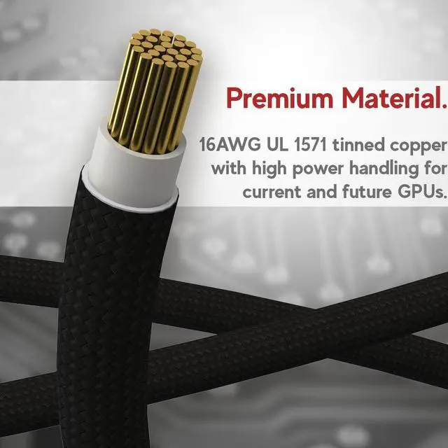 True PCIe 5.0 Power Delivery Engineered for RTX 5090, 5080, 5070, 5060 and compatible with RTX 4000 & 3000FE, this 16 pin GPU cable (12VHPWR 12+4) delivers up to 600W of clean, stable power. Perfect replacement or upgrade PSU to GPU cable for enthusiasts demanding maximum performance ^^ Premium 16AWG Tinned Copper Unlike cheap 12 pin GPU cables, LINKUP uses UL1571 16AWG sleeved wires for high efficiency, durability, and long-term stability. This sleeved GPU power cable ensures safe current handling across 150W600W loads for RTX 5000/4000 GPUs with zero compromise.