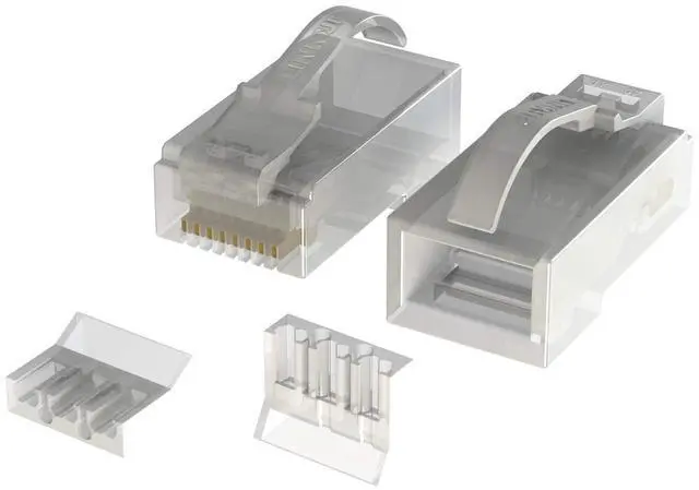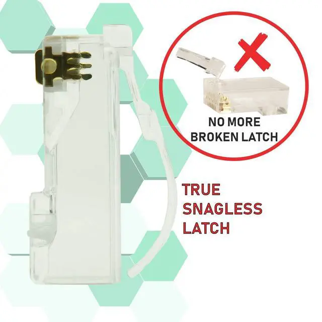 Secure Connection & Low Profile Snagless latch design to protect the latch from breaking to secure the connector in place. Eliminate boots for limited space installation. (Optional boots sold separately) ^^ Fast and EasyLINKUP Cat6 24K Gold Plated 2-Pieces UTP Connectors combine ease of use with Cat6 Gigabit Ethernet performance. Special insert design w/ pin 3 & pin 6 separated to prevent interference and makes installation easier for both professional and personal users. ^^ Quality ConstructionPlatinum 50m Gold Plated connectors with a 3 prong design for reliable performance on both stranded and solid wires. Compatible with all Cat6 8p8c wires between 24 to 26 AWG with 3 prong.