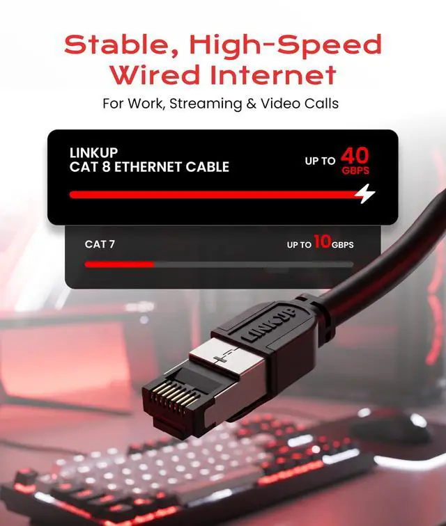 Ideal for Xbox, PlayStation, PC/Mac, smart TVs, NAS, and gaming consoleswhere a flexible ethernet cable beats Wi-Fi for consistency. ^^ Designed for everyday compatibility & reliability - The 26AWG stranded build works smoothly with consumer routers, switches, and NICs while still delivering certified Cat8 performance. Backed by a Limited 1-Year Warranty and LINKUP premium online support.