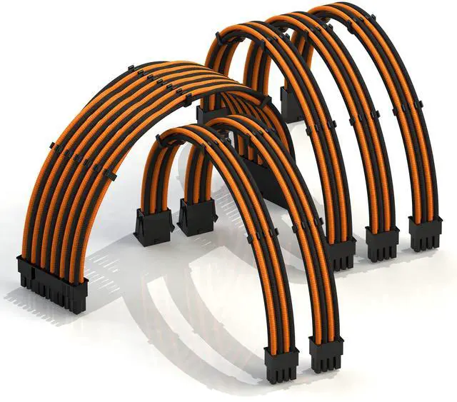 Get WiredHigh-quality, rugged, and routable modular 18AWG multi-color PSU cable extensions with vivid braided cables for refined professional builds ***Tested with RTX3090 GPU ^^ 2 x CPU & 3 x GPU2 x 4+4-Pin CPU power cables and 3 x 6+2-Pin GPU power cables bundled in one package. Suitable for new CPU & GPU. Also includes 24-Pin motherboard power cable; VividMod your build with 17 unique color options in 30cm and 50cm variations ^^ Robust and AdaptableAll cables are manufactured with thick 18AWG UL 1015 Tinned Copper wires and come in a high-density flexible protective sleeve allowing for a stiff yet adaptable temperament.
