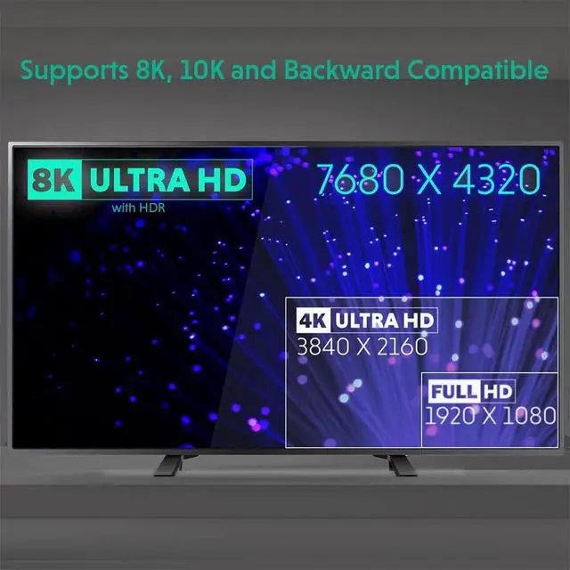 Agile at RangeSupport a range of the highest resolutions (up to 10K) and snappy refresh rates, featuring an unprecedented 48Gb/s of bandwidth and HDR. Robust 28AWG wiring, incorporates 60% more oxygen-free copper than common 30AWG HDMI cables, provides an extremely stable ULTRA HIGH-SPEED signal over long distances, and allows for longevity of the 360 swivel connector mechanism. ^^