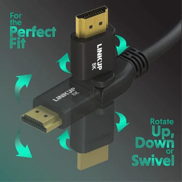 DTS: X. Comes fully equipped with Ethernet network cable support, Standard High Definition Copy Protocol 2.2 (HDCP) compliant and Certified HDMI 2.1. (Backward compatible with all previous HDMI interface versions) ^^ Superb ConstructionFeaturing 24K 50m gold-plated connectors and extreme mylar-foil and mesh tri-shielding provide pure EMI/EFI (interference) free signals. Robust molded housing, premium strain relief and 360 swivel design prevents fraying for a high-quality component that will last. Highly flexible PVC jacket, and 99.99 % high-purity OFC (oxygen-free copper wiring) means you can route and bend with confidence. ^^ Conveniently ManeuverableWith the proprietary LINKUP 360 swivel design these cables can be plugged into any device at a 90 angle and rotates 360 degrees up or down, installation in tight spaces are not an issue. Covered by LINKUP LIMITED 1-YEAR WARRANTY and premium online support.