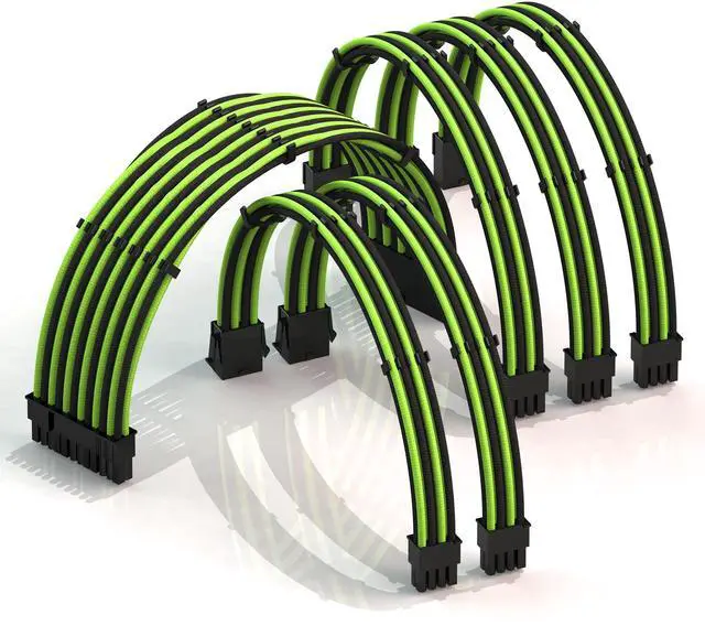 LINKUP - AVA 50cm PSU Cable Extension Sleeved Custom Mod GPU PC Braided w/Comb Kit - Compatible with RTX3090 ^^ 1 x 24 P (20+4) ^^ 2 x 8 P (4+4) CPU ^^ 3 x 8 P (6+2) GPU Set ^^ 500mm - GreenBlack