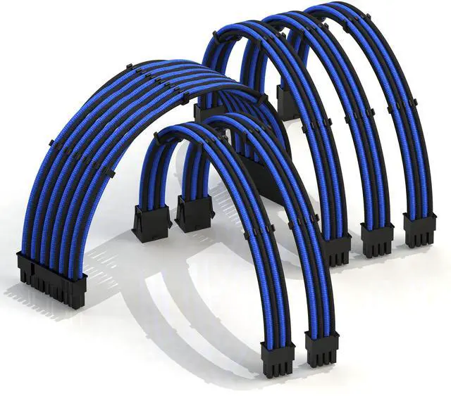 LINKUP - AVA 30cm PSU Cable Extension Sleeved Custom Mod GPU PC Braided w/Comb Kit - Compatible with RTX3090 ^^ 1 x 24 P (20+4) ^^ 2 x 8 P (4+4) CPU ^^ 3 x 8 P (6+2) GPU Set ^^ 300mm - Blueblack