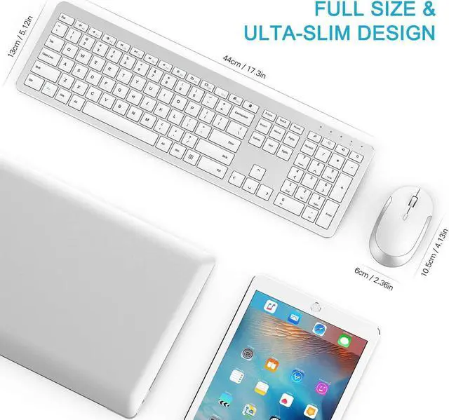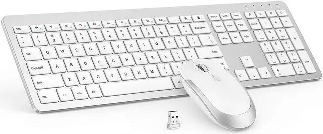 Wireless Keyboard and Mouse Combo - Full Size Slim Thin Wireless Keyboard Mouse with Numeric Keypad 2.4G Stable Connection Adjustable DPI (White & Silver)