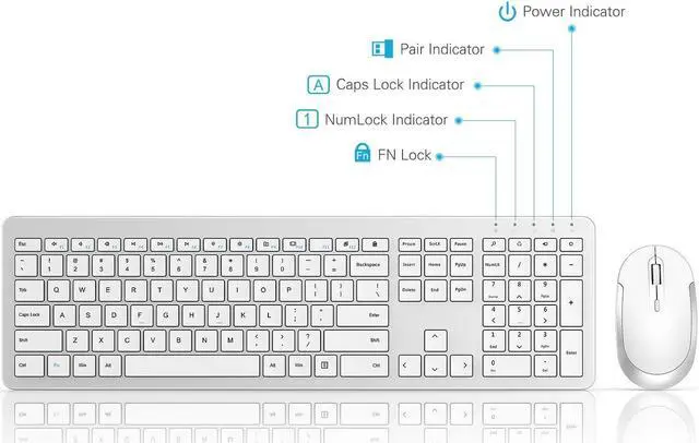 Full Size Wireless Keyboard Mouse -- Full-size keyboard provides everything you need at your fingers: the media/fn keys, numeric pad etc. The mouse and the keyboard are easily operated with sensitive touch and combined signal, so all you have to do before enjoy this amazing keyboard and mouse is to plug the USB receiver from the mouse and turn both on