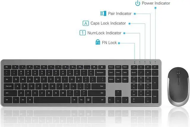 Full Size Wireless Keyboard Mouse -- Full-size keyboard provides everything you need at your fingers: the media/fn keys, numeric pad etc. The mouse and the keyboard are easily operated with sensitive touch and combined signal, so all you have to do before enjoy this amazing keyboard and mouse is plug the USB receiver from the keyboard and turn both on