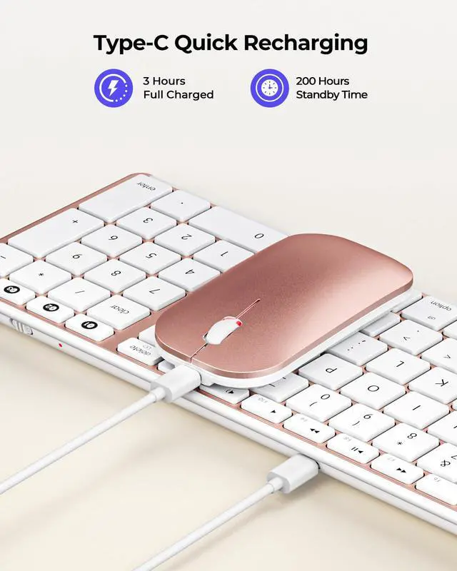 seenda Bluetooth Keyboard and Mouse for Mac, SKM64-2 Multi-Device Rechargeable Slim Wireless Keyboard Mouse Stainless Steel Full Size, Compatible with MacBook Pro/Air, iPad, Mac - White Rose Gold
